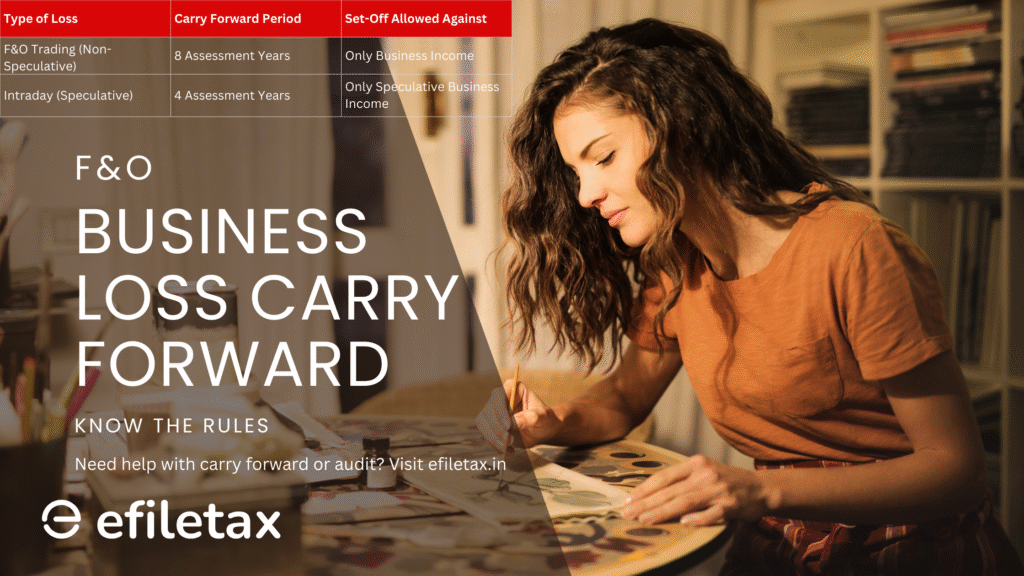 Understanding the carry forward rules for business and F&O losses can help you lower your future tax liability. With correct classification, timely filing, and proper documentation, you can fully utilise the 8-year benefit under Indian tax laws.
